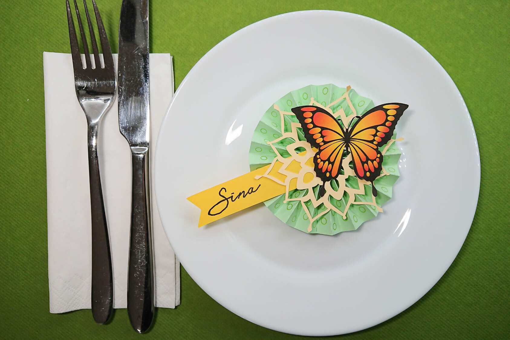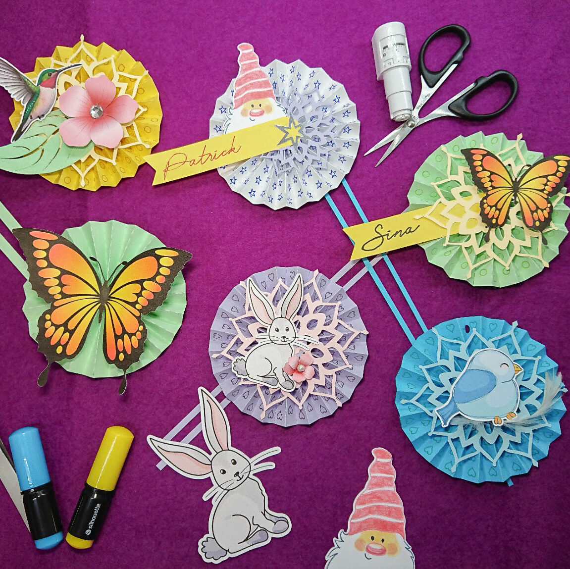 Die Rosetten kannst du an einem Serviettenring, Haarspange oder anderem befestigen. Du kannst sie auch Aufhängen, anbinden oder lose auf den Tisch oder Teller legen. Im Kurs gebe ich dir viele weitere Ideen und Inspirationen mit.